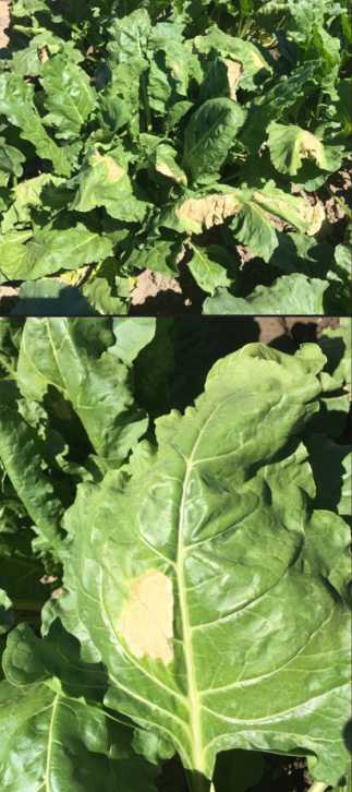 • Lesions form when leaves touch hot soil for prolonged periods of time